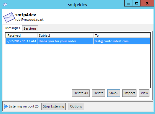 And if you are using smtp4dev for your testing, you’ll see the message come across: