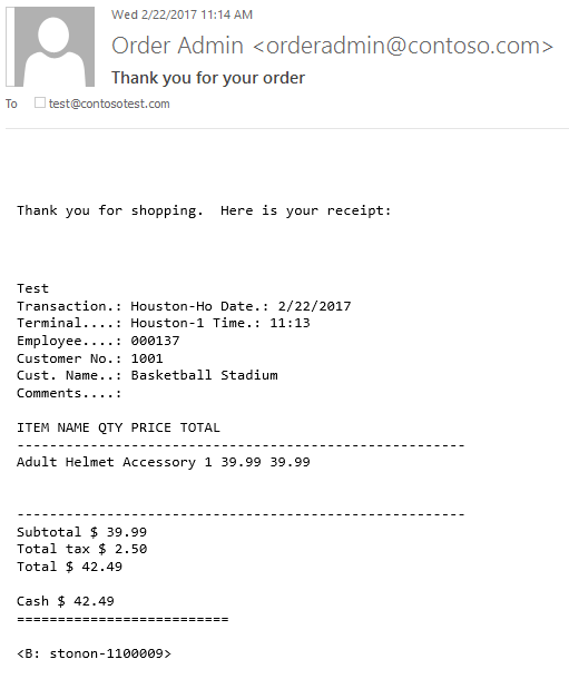 - The receipt is sent in the body of the email message.