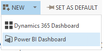 - In the toolbar, open the New menu and choose Dynamics Power BI Dashboard.