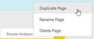- The Process Analyzer Template provides a foundation for building your own process-specific reports, so we’ll start by making a copy of this template, and then customize the copy. Right-click on the Process Analyzer Template page name at the bottom of the page and then choose Duplicate Page from the pop-up menu.