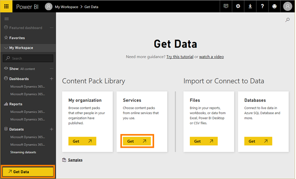 To use the content pack, you must add it to your Power BI account and connect it to your Dynamics 365 instance as follows: