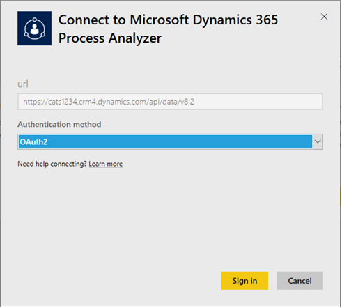 - If an Office 365 sign-in window opens, then use the credentials you normally use to sign into Dynamics 365. Once you are signed in, you’ll return to Power BI and your Dynamics 365 data begins to load, which may take a few minutes.