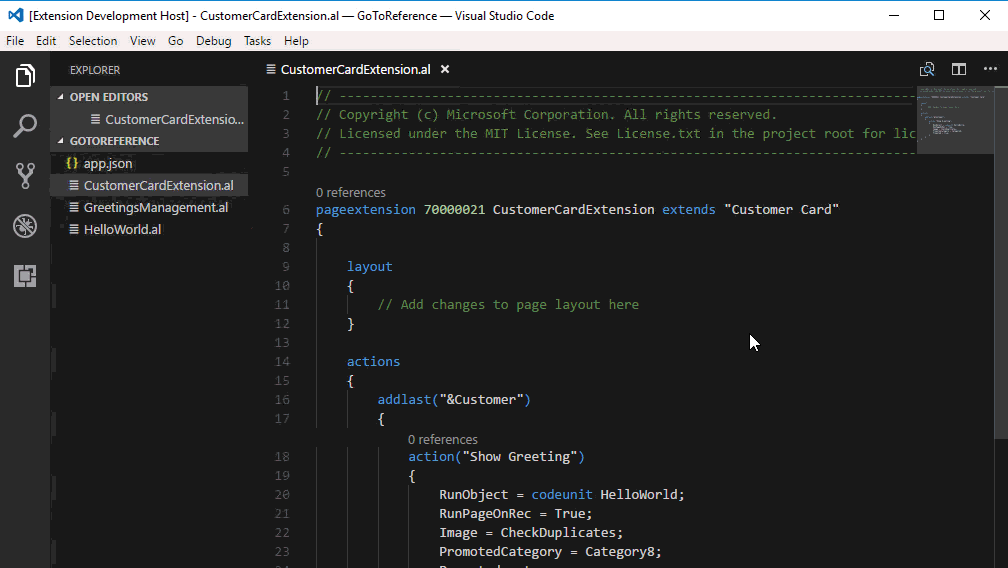 - The popular “Go To Definition” for dependencies gives you a generated version of the application objects, such as which fields a table has, and the datatypes of the fields. Simply place your cursor on the type and press F12.