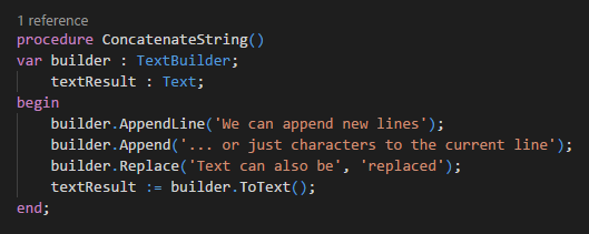 - We continue to add replacements for highly requested .NET types. This update adds a new AL type, TextBuilder, that wraps the most commonly used functionality of the System.StringBuilder type in the .NET Framework.