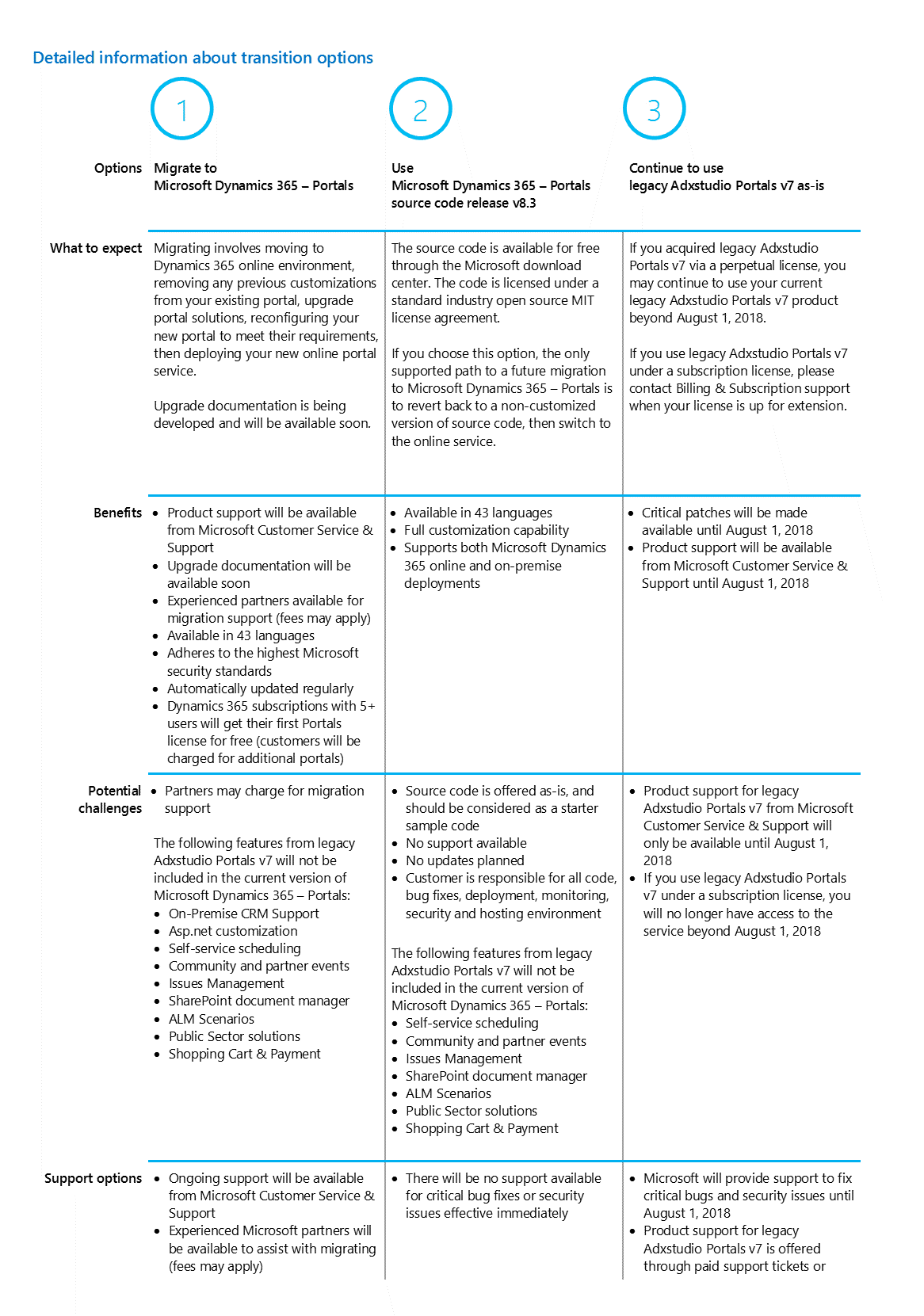 With these important changes to legacy Adxstudio Portals v7, there are three options for your organization to consider going forward: