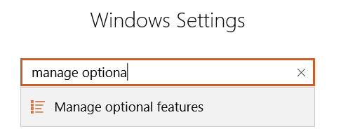 Based on the above statement, then, if you want to resolve this issue, then you just have to push Windows button and search for Settings and Manage optional features.