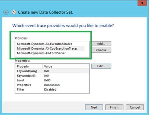 Note that a lot of the steps are similar to the previous AX 2012 post by Sam Peng, therefore I have deliberately kept the same format. The only differences here are we change the event trace providers and increase the buffer sizes based on testing I’ve done with the help of a few engineers and customers. You may need to increase or decrease those depending on your scenario, although it should fit most scenarios.