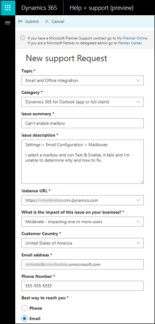 We’re happy to announce the launch of a new Help + support ticketing experience for admins to contact a Microsoft support representative for Dynamics 365 (online). The new process will help us improve your overall support experience and drive faster issue resolution.