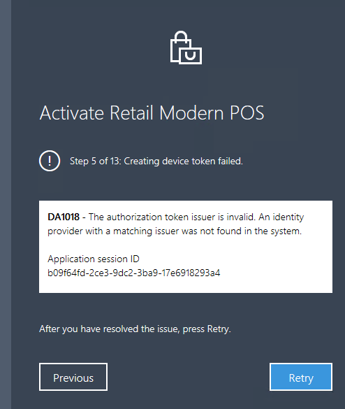 | errorMessage | The authorization token issuer is invalid. An identity provider with a matching issuer was not found in the system. |