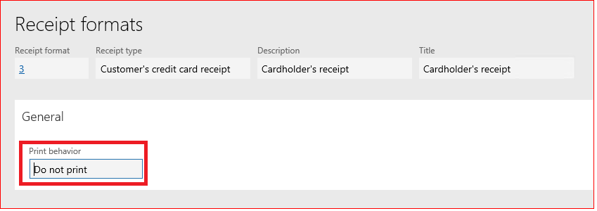The Receipt format should be set to “Do not print”