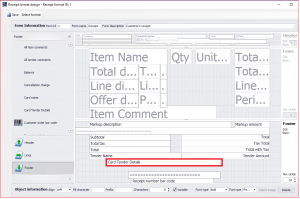 Select the Footer of the Customer Receipt. Pull the Card Tender Details into the Footer of the layout