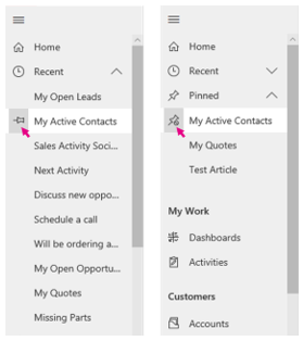 - Recent and pinned items are moved to the top level for easy access. Entity level recent items are removed to eliminate hierarchy.