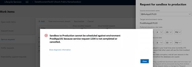 To help ensure that rollback support is always available for the Production environment, overlap of service requests on the Production environment will no longer be supported.