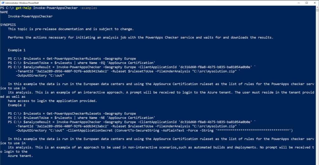 There are a few prerequisite steps you will need to complete prior to using the PowerShell module to validate your solutions. You can follow the instructions in the PowerApps checker documentation to complete the steps below.