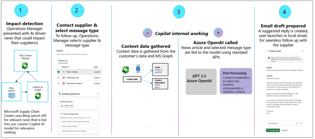 We’re excited to launch Copilot in Microsoft Supply Chain Center,  which harnesses generative AI to assist Supply Chain managers in real-time communication with suppliers regarding specific news.