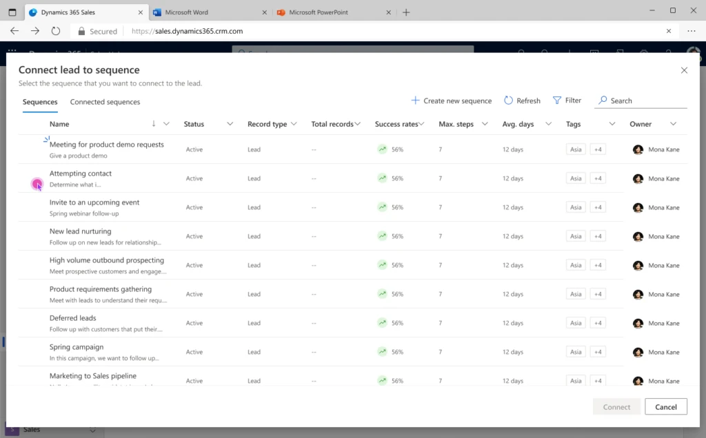 Productivity and efficiency are important to sales teams. Improving customer engagement, as well as collaboration when multiple team members work on an account, can be key to securing deals faster, and bringing better business results. With the support of multiple sequences in Dynamics 365 Sales, this now becomes easier than ever.