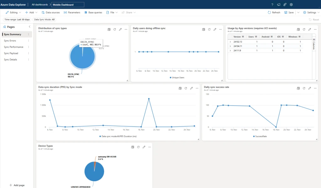 Admins can now proactively identify challenges, monitor Mobile Offline telemetry, and optimize offline sync performance. Here are some of the key benefits: