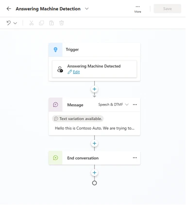 Customers can enable AMD through the answering machine detection system topic in Copilot Studio. When a machine is detected, the system automatically follows the predefined flows, like playing a customized message or ending the call. This improves predictability across outbound engagements by helping teams avoid nonproductive connections.