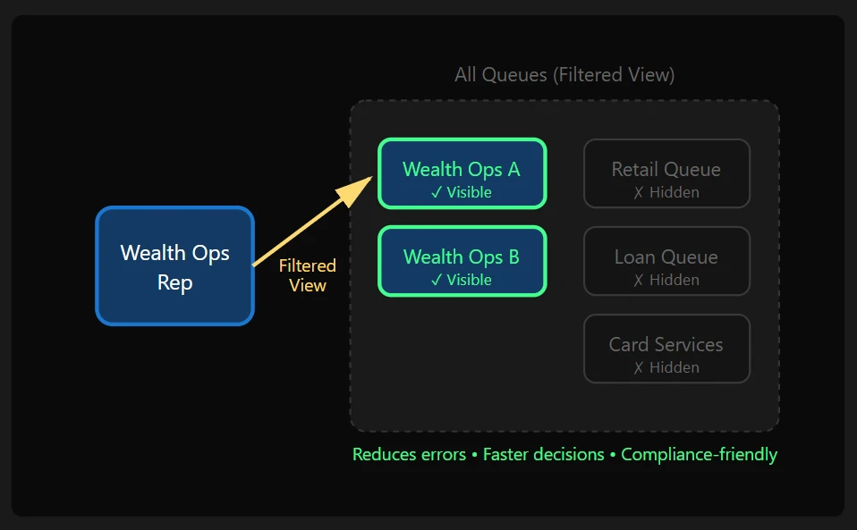 This ensures efficient workload distribution across specialists, supports compliance-friendly handling of regulated requests, and delivers consistent, reliable service for customers.
