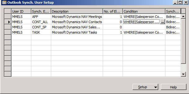 - Select Outlook Synch. User Setup