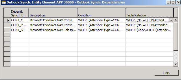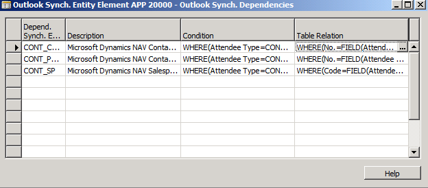 - Close the Outlook Synch. Entity Element APP 20000 – Outlook Synch. Dependencies form