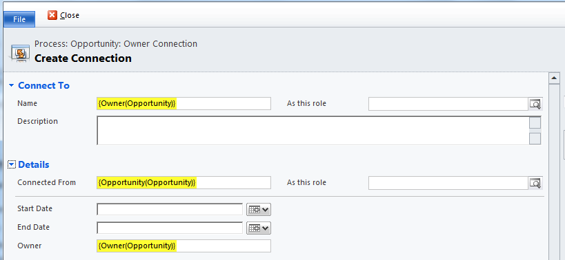 That’s ok though. What it means is that in this model, we’ll drive the view fully off Connections only, not Owner. Taking this approach does require that each sales person will need to be identified with a Connection, including the Owner of the opportunity, so you will want to automate this with a simple workflow or plug-in that creates a Connection for the Owner automatically.