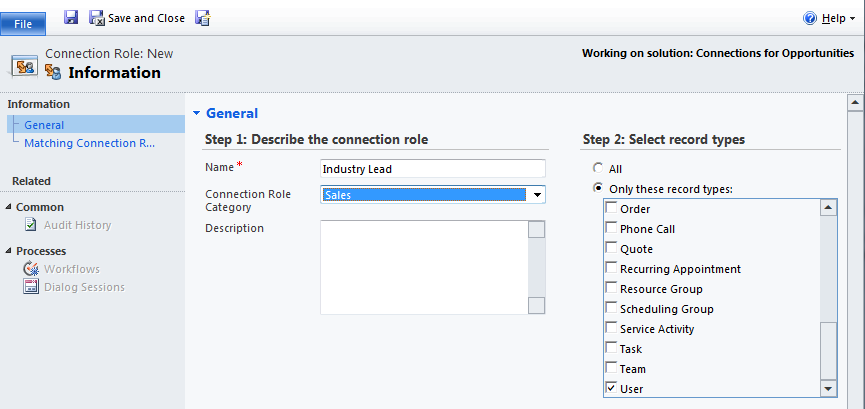 With this complete, individual owners won’t have to do any additional to work with their opportunities. If others are involved in the opportunity, they can list the additional users using Connections, optionally adding a Connection Role to clarify their role with respect to the opportunity.