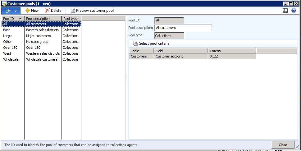6. I can now go back to the application to this location in Accounts Receivable and navigate to the location of the ‘Customer Pools’ form