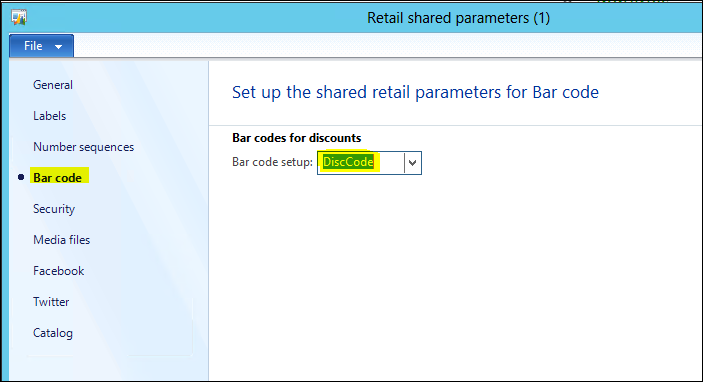 2. Set the bar code for use with Retail discounts.