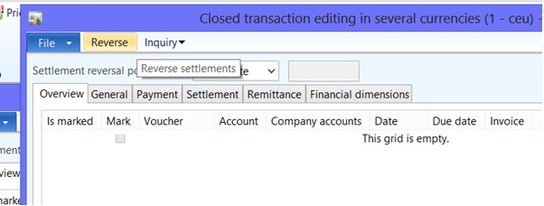 5. Click on the Reverse button on the top toolbar. The Marked payment and invoice vouchers will disappear from the Closed Transaction Editing form.