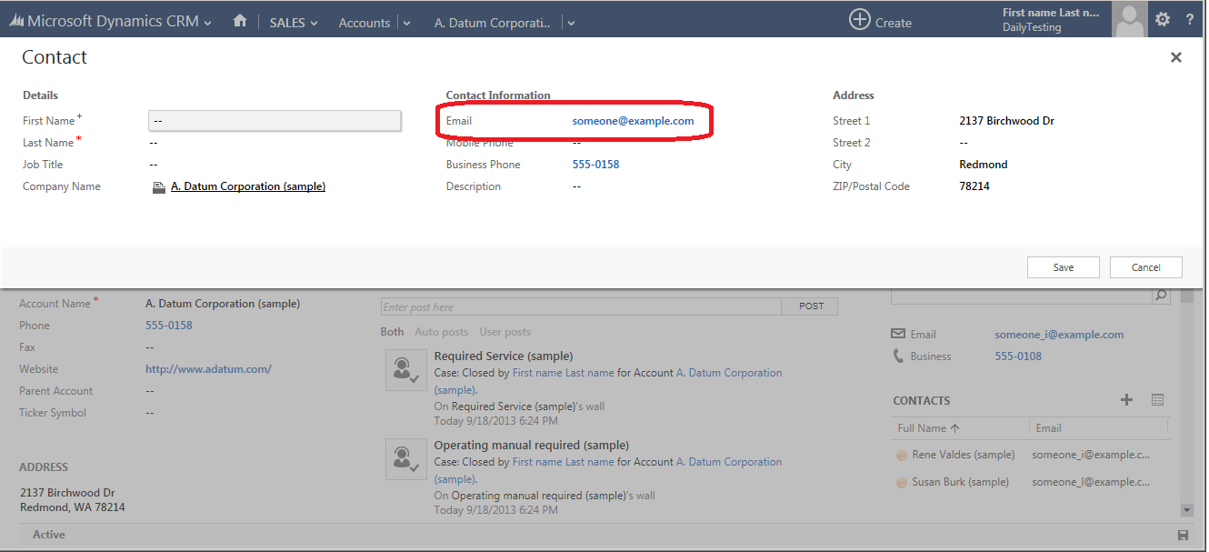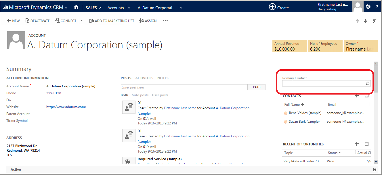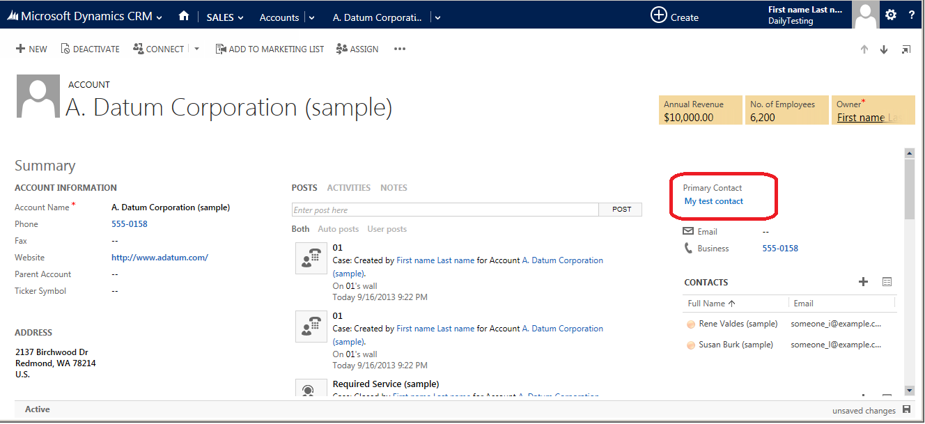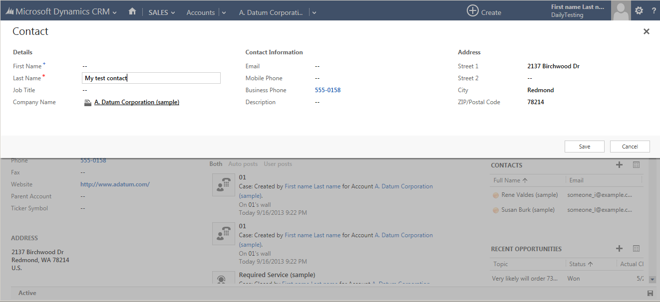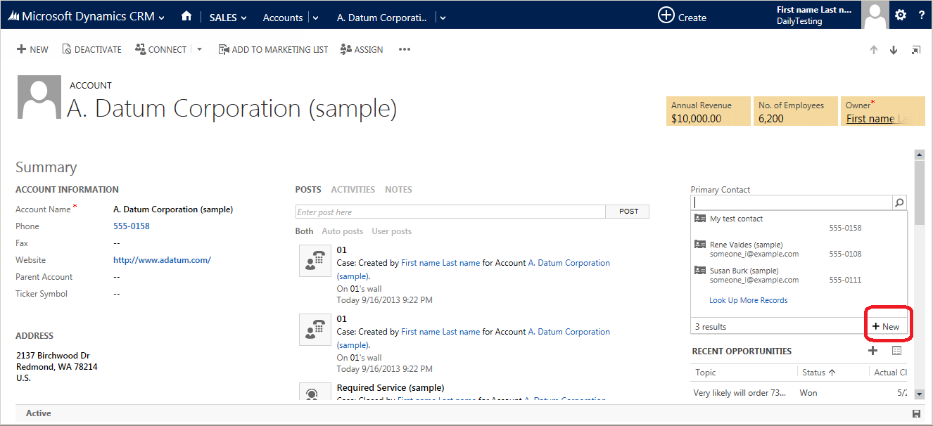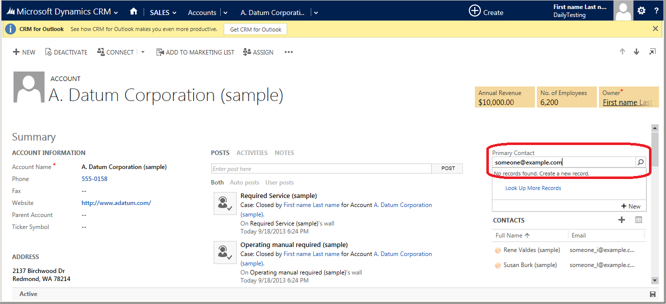 In this blog I’ll walk you through the new user experience using an example where we would be creating a new related contact record for an already existing account record in CRM. After which I’ll talk about the availability and limitations of this feature.