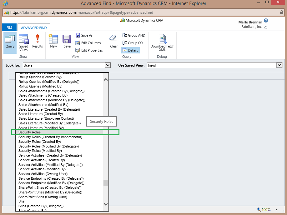 Step 3: Select Security Roles from the list as what to search for. (As shown below)