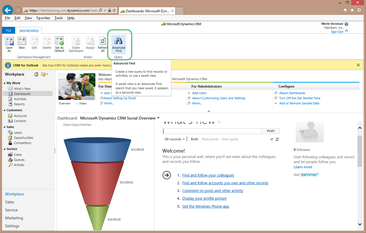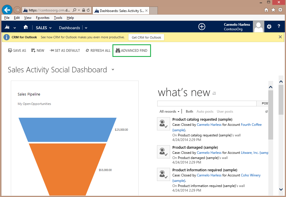 Step 1: Login to your CRM organization (as shown below) and click on the Advanced Find located on the top toolbar as shown below.