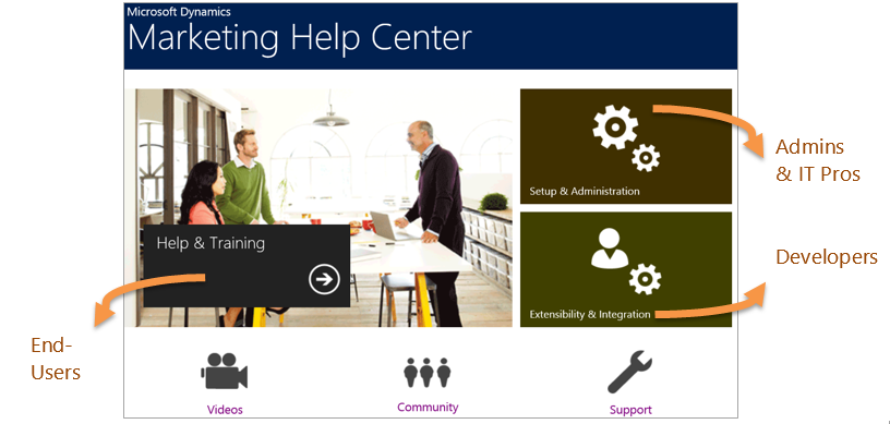 The Help Center is your portal to ALL the Dynamics Marketing sites for each audience: