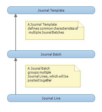 Journal templates are used to specify the underlying journal structure and to provide the default information for the journal batches. Journal batches usually serve to group journal lines, such as lines created by two different users.