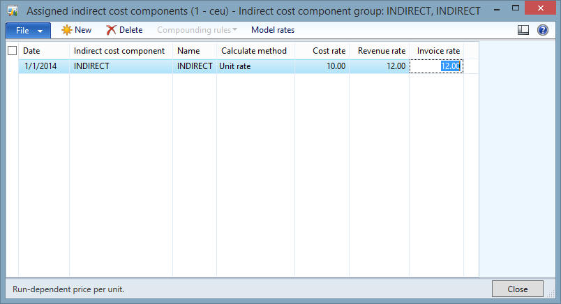 * Open the Model rates form, where you can view the calculated hourly values for cost, revenue, and invoice amount for an indirect cost, based on the compounding rules and calculation method that you selected. You can also create compounding rules to increase the value added to a project for the selected indirect cost. For more information on compounding rules, see the following TechNet article: