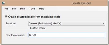 The new locale is installed using the MSI file, replaces the default locale (in this case for de-CH), and is marked with an asterisk as a custom locale: