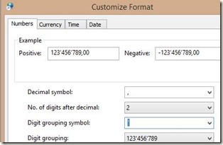 So ReportViewer never knows about the current regional settings and the changed symbols when looking up and using the default settings. So for our friends from Switzerland, there is currently only one known option: manually change the thousands separator and re-format the RDLC decimal values. The drawback of this is that every decimal expression has to be changed in all affected reports.