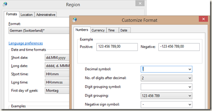 Due to a talk between buildings K and L in Munich a while ago, we came across localization topics, globalization and ways to force specific locales (and number symbols) for a Windows Forms application. Unfortunately, there is no way, because globalization changes are only supported for web.config, not app.config. Not talking about different threads and (from my knowledge) no inheritance of culture information to the ReportViewer thread.