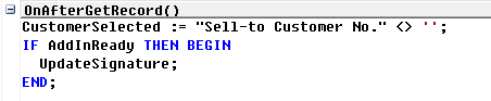 Microsoft.Dynamics.NAV.InvokeExtensibilityMethod(‘UpdateSignature’);