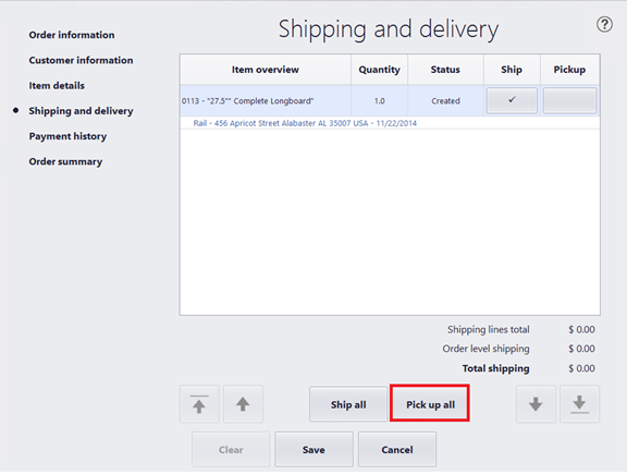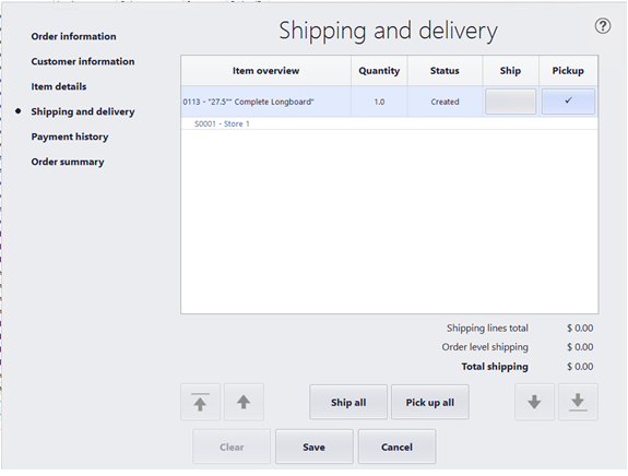 If you select View details, the Sales order can be changed from Ship to Pickup.