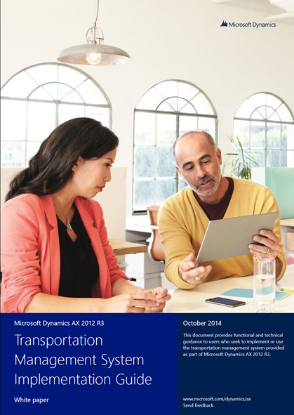 We’re glad to announce that the Transportation Management System Implementation Guide for Microsoft Dynamics AX 2012 R3 is now available. You can download it from PartnerSource or CustomerSource.