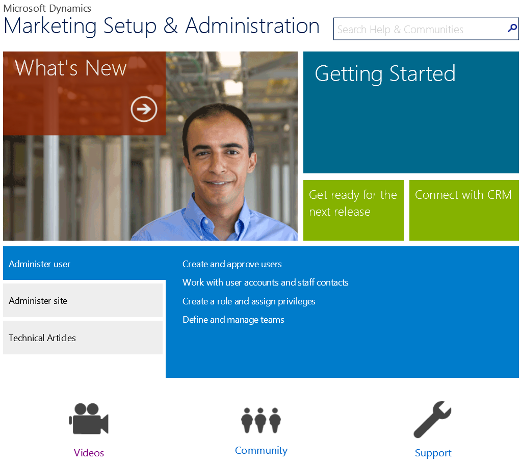 This central information hub gives you access to key Microsoft Dynamics Marketing content sources: