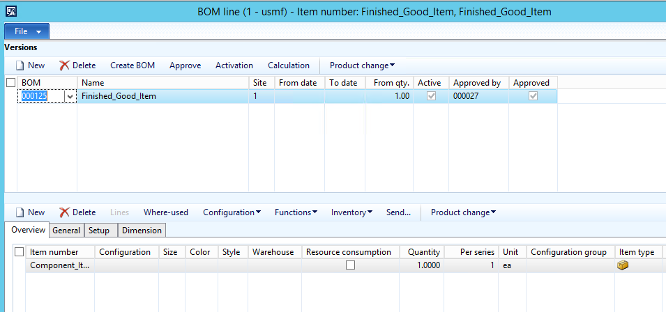 4. With your new finished good item created highlight your item Finished_Good_Item.