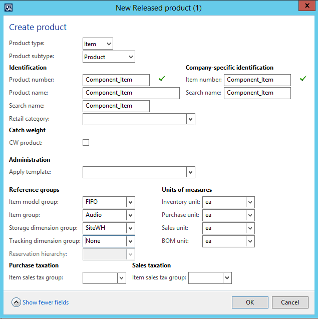 Create a new released product as a finished good that will utilize the serial number group and component created above.