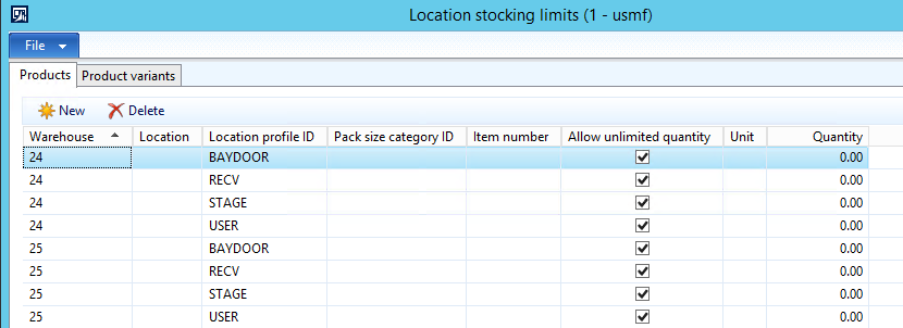 Besides the Location profiles a new entity called Location stocking limits has been introduced in the WHS implementation.
