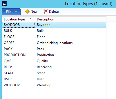 The existing WMSII location type, based on the WMSLocationType enum, can as well be migrated one to one with the WHS location type. But please do note the conceptual difference in the two implementations. In the WHS the location type entity does not in itself drive any warehouse management processes, this must be enabled by setup and query logic, so again it will make sense to evaluate if all the location types will be needed in the new WHS implementation.