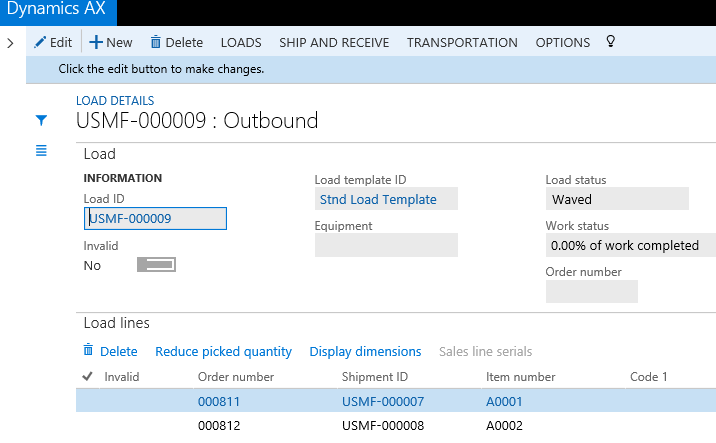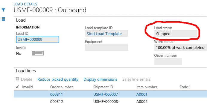 After a mobile device has been used to complete the first work item, the status of the load is updated to In process. And as soon as the second work item is completed, the status of the load is changed to Loaded. And with the use of the Work audit template, the system will immediately update the load to the status of Shipped.