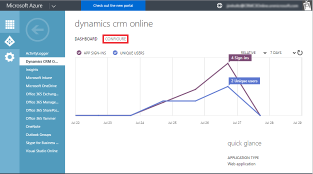 3. Click Applications, and then click the Dynamics CRM Online web application.