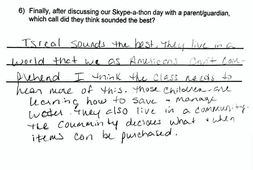Another meaningful way to include the parents is to create a homework assignment where the students report back what they learned to their folks. Then, they ask the parents to respond about which Skype-a-Thon destination they found most interesting and why. The kids love having homework that their parents need to do. More importantly, this assignment encourages rich discussion between parent and child. That is a win-win!
